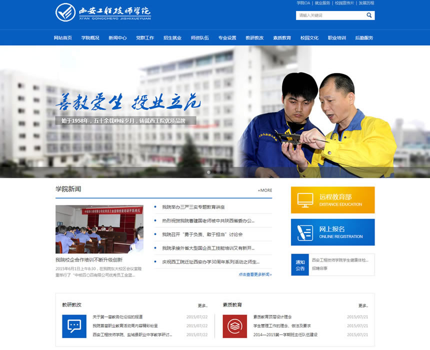 学校简介:介绍学校的专业模块。以图文并茂的形式突出介绍学校的办学理念与目标追求、领导班子、学校荣誉、校园风光等。