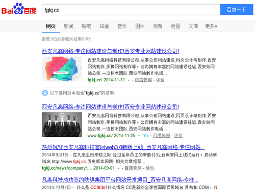 第三种情况是,你的网页在关键词搜索结果中排名太靠后,此时可以用网站名称或网址在百度上搜,如果能找到你的网页链接,就证明百度已收录了你的网站。 如下图所示可以用全称和网址来搜索: